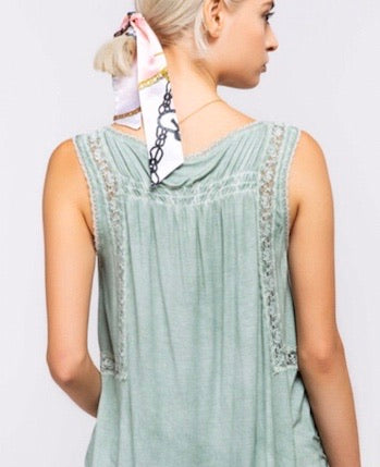 Sleeveless Eyelet Tie Front Tank Top - Black