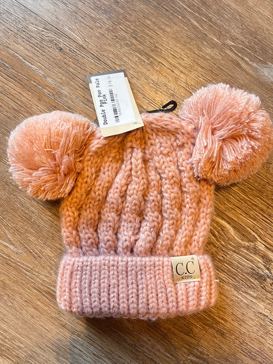 C.C Children Double Pom Pom Beanie - Pale Pink