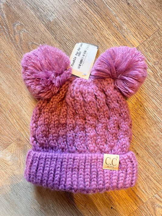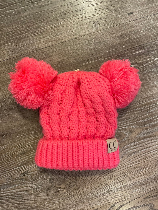 C.C Children Double Pom Pom Beanie - Hot Pink