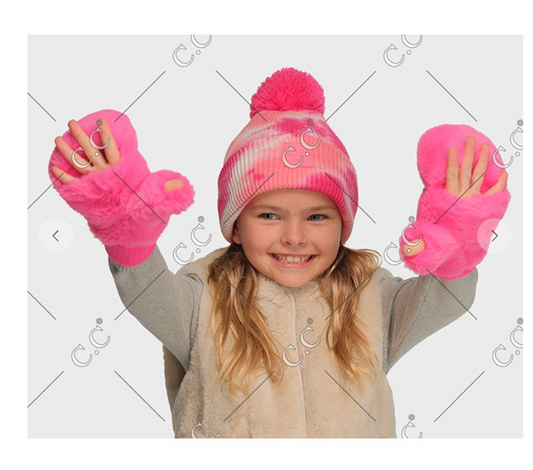 C.C Children's Faux Fur Convertible Mittens - Hot Pink