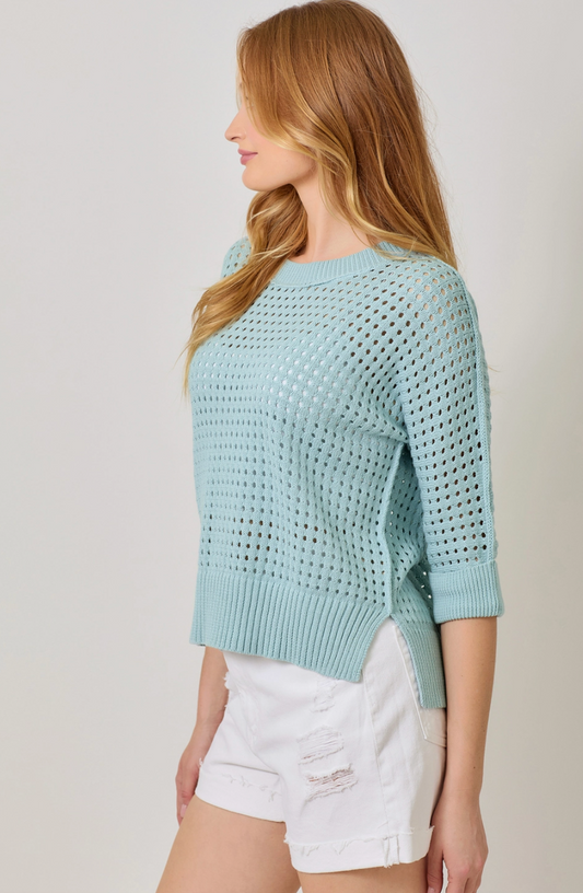 Open Stitch High Low Sweater - Blue