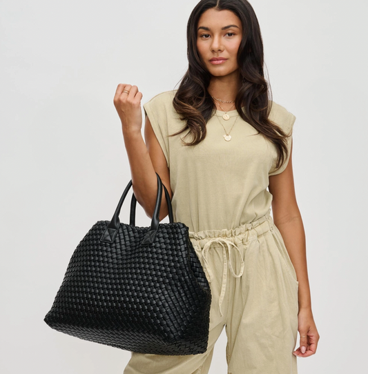 Ithaca Woven Vegan Leather Tote - Black