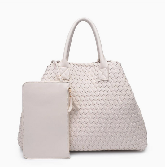 Ithaca Woven Vegan Leather Tote - Beige
