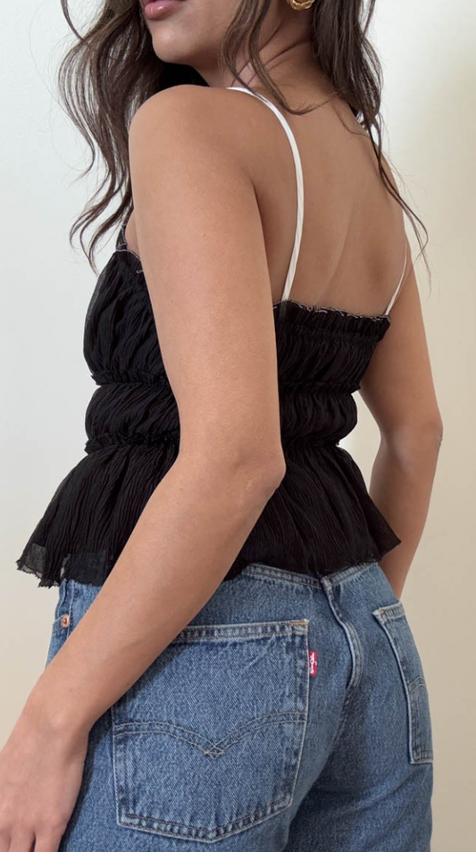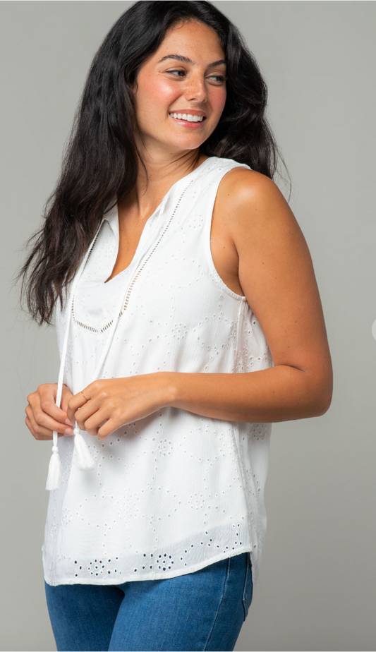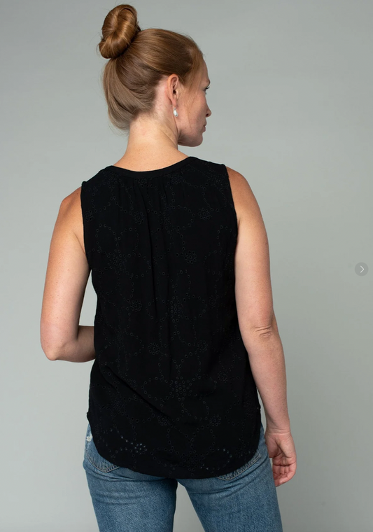Sleeveless Eyelet Tie Front Tank Top - Black