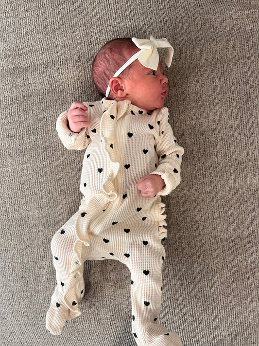 Isabella Heart Waffle 2-Way Zip Ruffle Footie