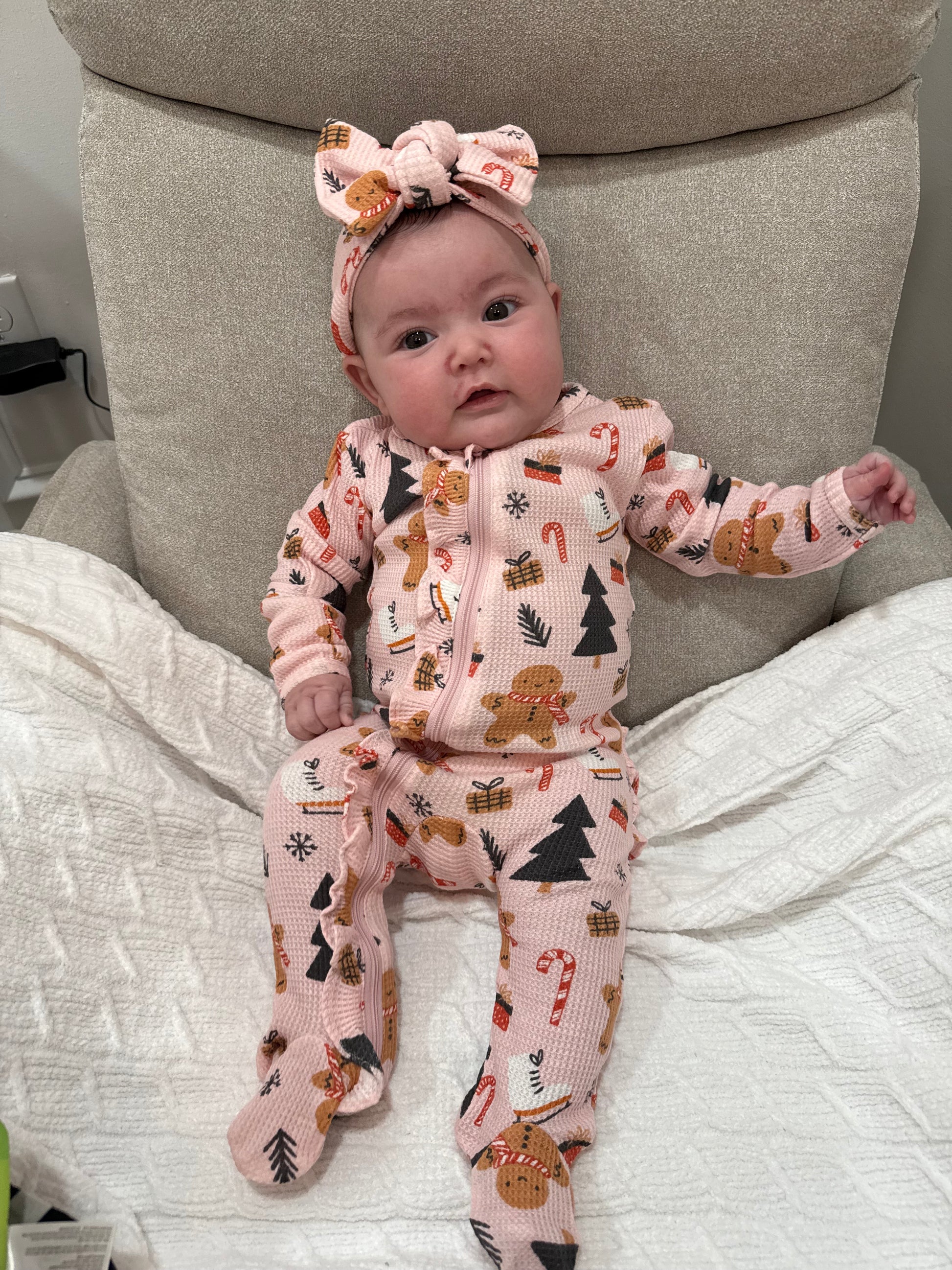 Gingerbread Organic Waffle Ruffle Zip Footie